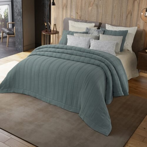Βαμβακερή Ανάγλυφη Κουβέρτα Υπέρδιπλη Alice Aqua Liolios Home (230×260)