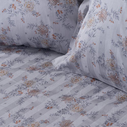 Beauty Home Σετ παπλωματοθήκη υπέρδιπλη Art 12212 Jasmine 100% Βαμβακοσατέν 300tc 230×250 Γκρι