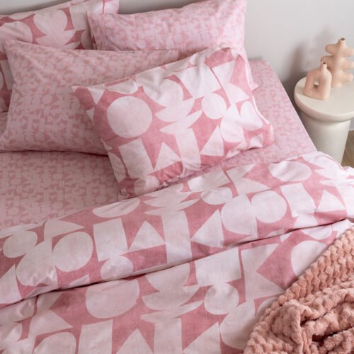 Σετ σεντόνια υπέρδιπλα με λάστιχο Mnemba Art 12184 170×200+30 Ροζ Beauty Home