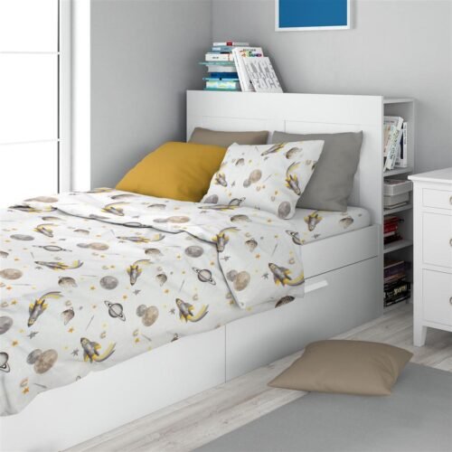 Σεντόνια Εμπριμέ Σετ 3 τεμ kids Space Mission 183 160X240 White-Grey 100% Cotton