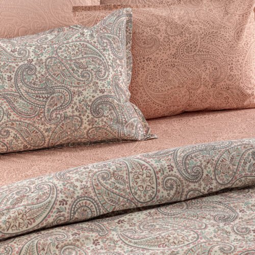 Το σετ περιέχει 1 Πανωσέντονο 270×260, 1 Κατωσέντονο 270×260, 2 Μαξιλαροθήκες 52×72