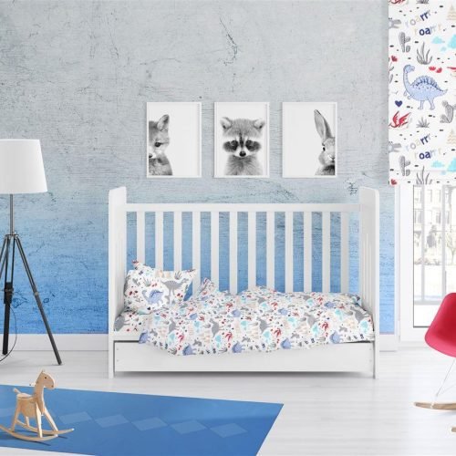ΚΑΤΩΣΕΝΤΟΝΟ ΜΕ ΛΑΣΤΙΧΟ bebe Dino 309 0,70X1,40X0,15 White-Blue Cott/Pol 70/30