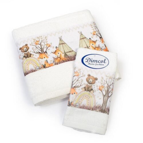 Πετσέτα Σετ 2 τεμ Με Ψηφιακή Εκτύπωση bebe Forest Animals 335 30X50,70X140 White 100% Cotton