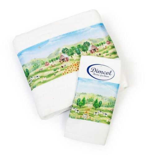 Πετσέτα Σετ 2 τεμ Με Ψηφιακή Εκτύπωση bebe Farm 340 30X50,70X140 White 100% Cotton