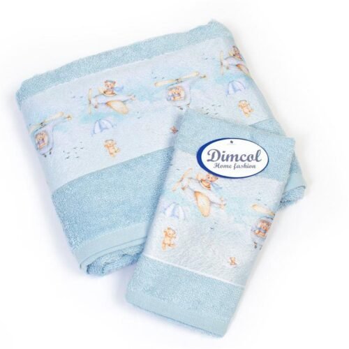 Πετσέτα Σετ 2 τεμ Με Ψηφιακή Εκτύπωση bebe Helicopter 305 30X50,70X140 Sky Blue 100% Cotton