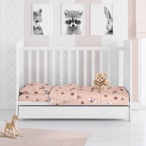 ΚΑΤΩΣΕΝΤΟΝΟ ΜΕ ΛΑΣΤΙΧΟ bebe Birds 15 0,70X1,40X0,15 Pink Flannel cotton 100%