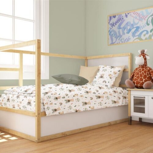 Πάπλωμα Εμπριμέ bebe Cloudy Bear 581 120X160 White-Olive 100% Cotton