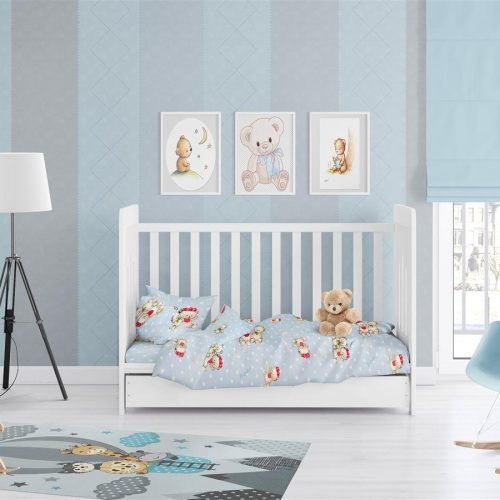 ΣΕΝΤΟΝΙΑ ΕΜΠΡΙΜΕ ΣΕΤ 3 τεμ bebe Two Lovely Bears 64 120Χ160 Blue Cotton 100%