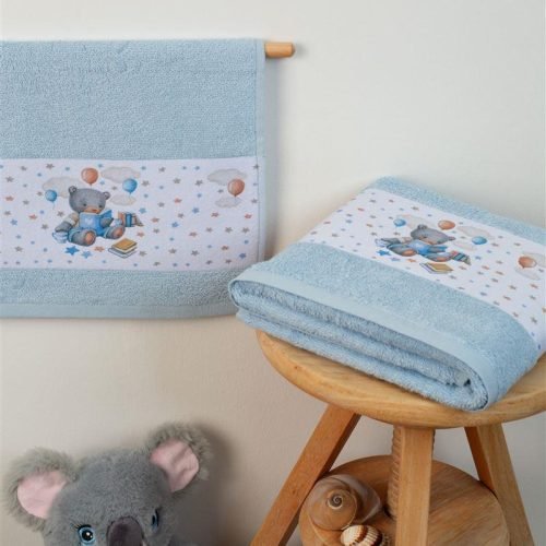 ΠΕΤΣΕΤΑ Με Ψηφιακή Εκτύπωση Σετ 2 τεμ bebe Studying Bear 36 30X50,70X140 Σιελ 100% Cotton