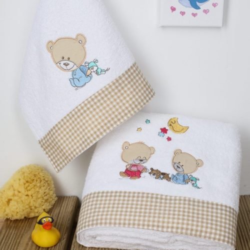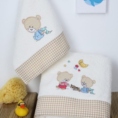 ΠΕΤΣΕΤΑ ΣΕΤ 2 τεμ bebe HAPPY BEARS 22 30X50,70X140 ΕΚΡΟΥ/ΜΠΕΖ Cotton 100%