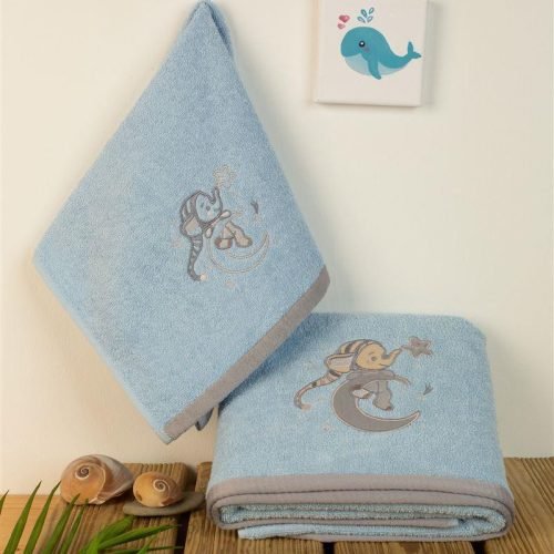 ΠΕΤΣΕΤΑ Με Κέντημα ΣΕΤ 2 τεμ bebe Dreaming Elephant 166 30X50,70X140 Σιελ 100% Cotton