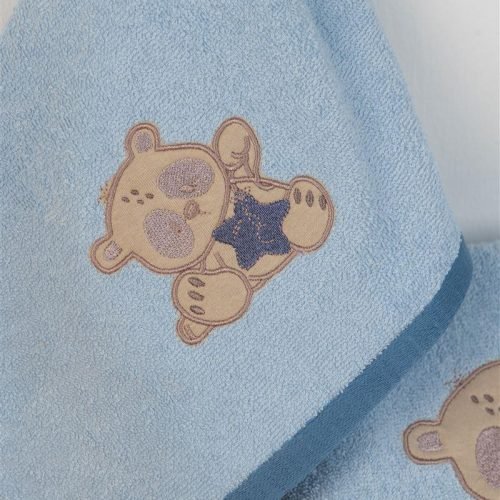 ΠΕΤΣΕΤΑ Με Κέντημα Σετ 2 τεμ bebe Star Bear 151 30X50,70X140 Σιελ 100% Cotton