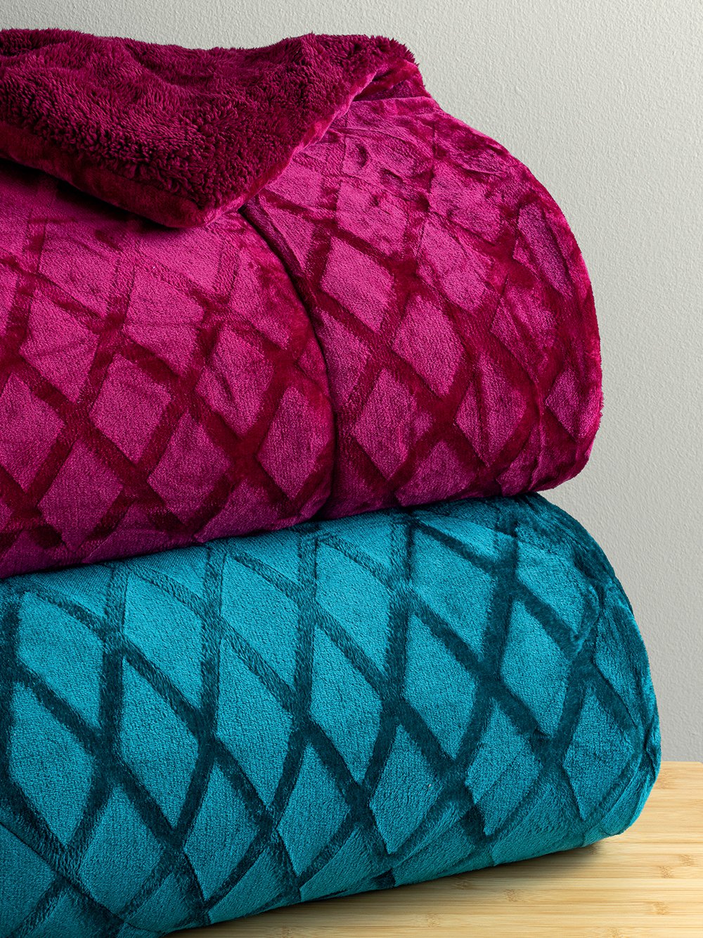 Κουβερτοπάπλωμα Μονό 160×240 Sherpa Collection NADINE/4 από ύφασμα embossed flannel στη μία πλευρά, γούνα sherpa στην άλλη, και γέμιση 100% polyester fill, συνολικού βάρους 730gsm, αφράτο, ζεστό, κατάλληλο για τους χειμερινούς μήνες.