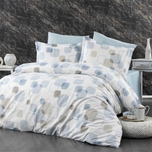 Παπλωματοθήκη Εμπριμέ Μελίνα 707 160X240 White-Light Blue 100% Cotton