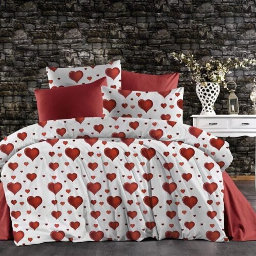 Σεντόνια Εμπριμέ Σετ 4 τεμ Πάθος 607 240X270 White-Red 70/30 Cott/Pol