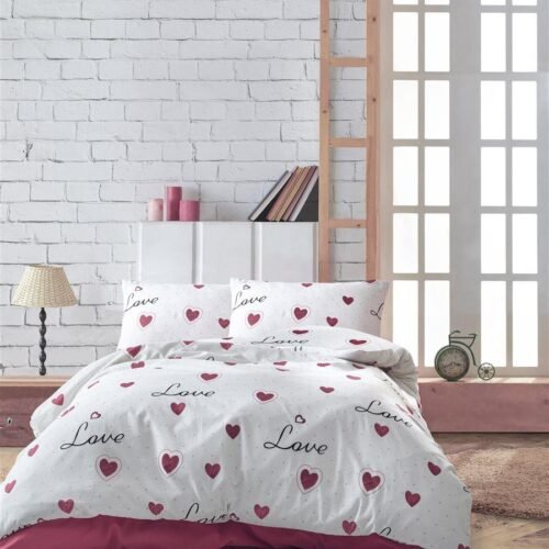 Παπλωματοθήκη Εμπριμέ Έρως 301 160X240 White-Red 70/30 Cott/Pol