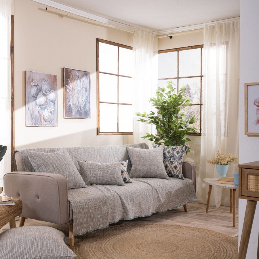 Τα υφάσματα υφαίνονται στην Ελλάδα από ελληνική υφαντουργία και μεταποιούνται από την εταιρία μας.Η σύνθεση του υφάσματος των ριχταριών αποτελείται από νήματα βαμβακερά σε ποσοστό 75% και πολυεστερικά σε ποσοστό 25%.