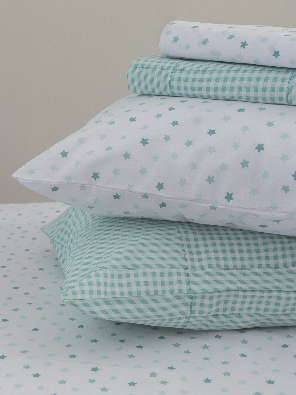Σεντόνι Κούνιας 130×170 BB100 (σχέδιο πράσινο καρό) από 100% βαμβακερό ύφασμα των 144 κλωστών ανά τ. ίντσα.