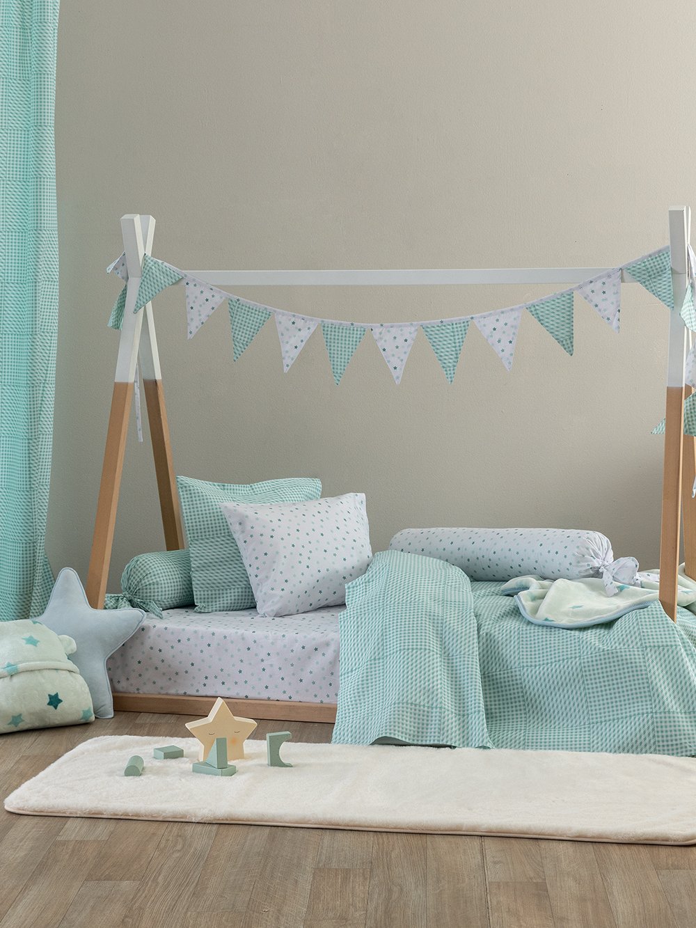 Σεντόνι Κούνιας 70×140+20 BB100 (σχέδιο πράσινο καρό) από 100% βαμβακερό ύφασμα των 144 κλωστών ανά τ. ίντσα.