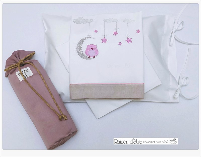 Σετ Σεντόνια Λίκνου Dreamy Owl Ροζ 70×110 Raison D’etre