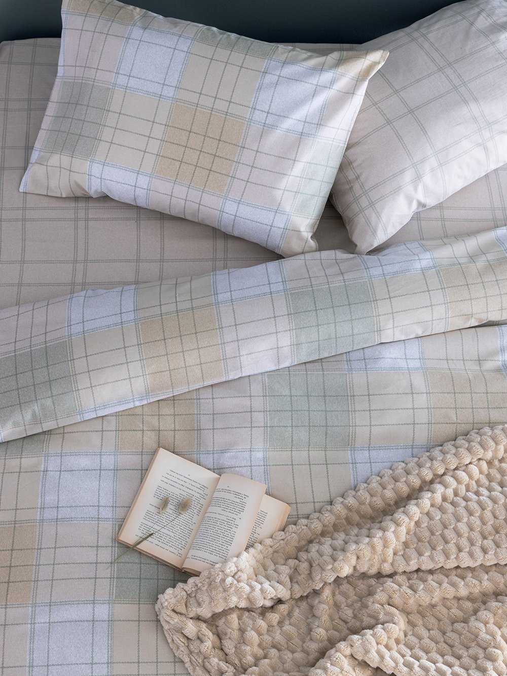 1 Πανωσέντονο 240×260, 1 Κατωσέντονο 240×260 ή 1 Κατωσέντονο με λάστιχο 170×200+30 & 2 Μαξιλαροθήκες 52×72